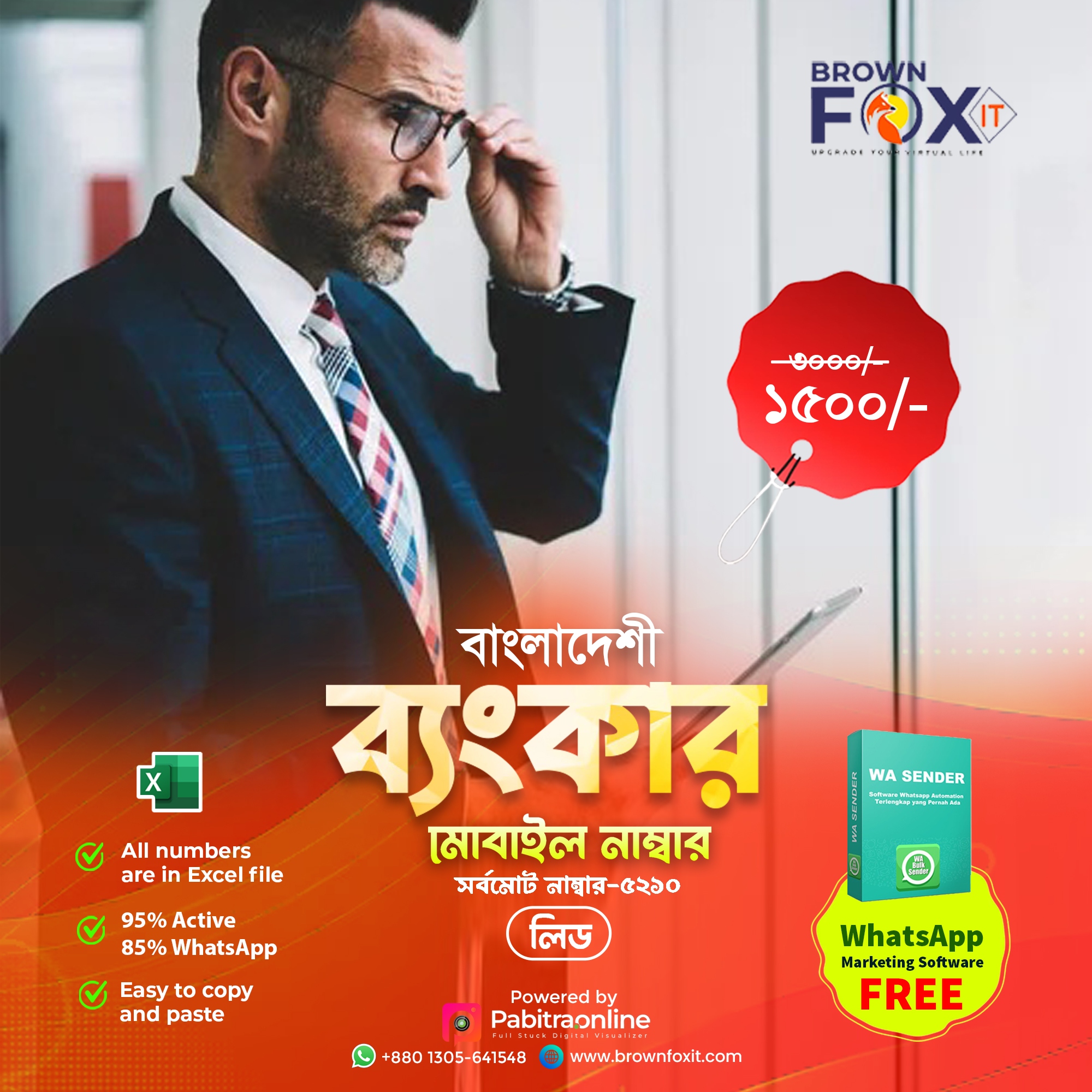আপনার যদি কোন প্রকার হাই-ভেলু প্রোডাক্টস বা সার্ভিস থাকে তাহলে আপনার মার্কেটিং এর জন্য দরকার এমন কাস্টমারের মোবাইল নাম্বার যারা আপনার প্রডাক্টস বা সার্ভিস কিনতে সক্ষম। আমরা আপনাকে ফুল একটা প্যাকেজ দিচ্ছি যেখানে বাংলাদেশের সকল প্রকার ভি, আই, পি বেক্তির মোবাইল নাম্বার আছে। আমরা ভি, আই, পি, বেক্তি যেভাবে ফিল্টার করেছি সেটা হল, বাংলাদেশের বড় বড় সরকারি এবং বেসরকারি এসোসিয়েশন মেম্বার, ক্লাব মেম্বার, কার অনার, ইত্যাদি। জেগুলর তালিকা আমাদের ওয়েবসাইট থেকে দেখতে পারবেন। আমাদের ২ টা প্যাকেজ মিলিয়ে প্রায় ২ লক্ষ ৭০ হাজার মোবাইল নাম্বার আছে, সবগুলো নাম্বার এর সেগমেন্ট ভাগ করা আছে। প্রায় ১ লাখের বেশি নাম, ঠিকানা, প্রফেশন, সহ আছে, এবং বাকি ১ লখ প্রফেশন বা এসোসিয়েশন অনুযায়ী ফোল্ডার বাই ফোল্ডার ভাগ করা আছে, মানে আপনি কাকে কল দিচ্ছেন বা মেসেস দিচ্ছেন জেনে বুজেই দিতে পারবেন।